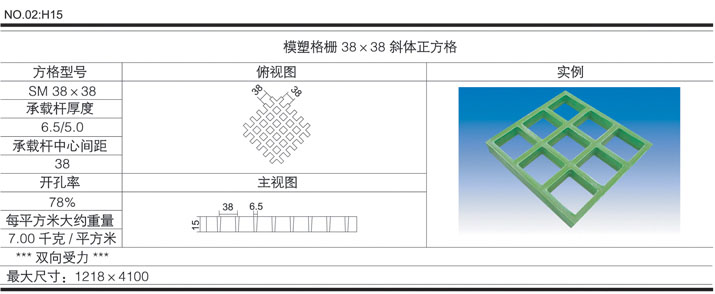 玻璃鋼格柵 >> 模塑類 >> H15×38×38斜體正方格