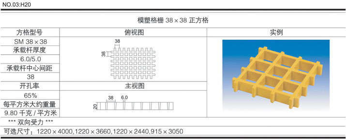>> H20×38×38正方格